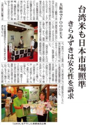 Report from the Japan newspaper “商経アドバイス”: At the exhibition this year, Shan Shui Me Food Enterprise from Taiwan showcased Taiwan rice. Shan Shui Me Food Enterprise operates processing facilities that include a Grain Drying & Conditioning Center and a rice milling plant. The company’s facility was awarded first place in the National Grain Industry Sanitation and Safety Evaluation organized by Taiwan’s Council of Agriculture, Agriculture and Food Agency (equivalent to Japan’s Ministry of Agriculture, Forestry and Fisheries), receiving the highest recognition for quality and standards. The company has established its own brand, “Sunsuivi”, and presented a variety of products in Japan, including Taiwan Koshihikari, Taiken No. 9, and Multi-purpose Sushi Rice. “Sunsuivi”rice is cultivated with water sourced from the glacial lakes of the Snow Mountain Range at an altitude of 3,517 meters. This pristine water is rich in trace minerals. Currently, around 60 tons per month are exported to Japan, with freshness preserved through vacuum packaging or deoxidation processing.